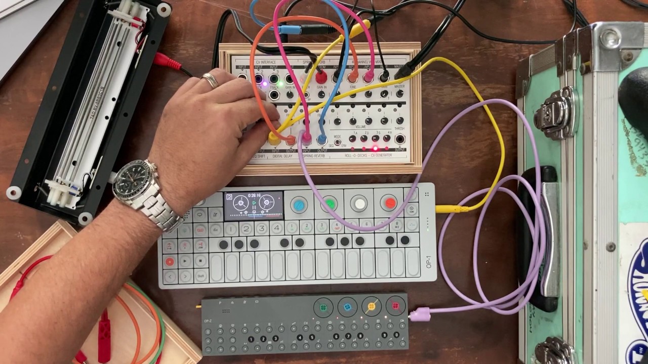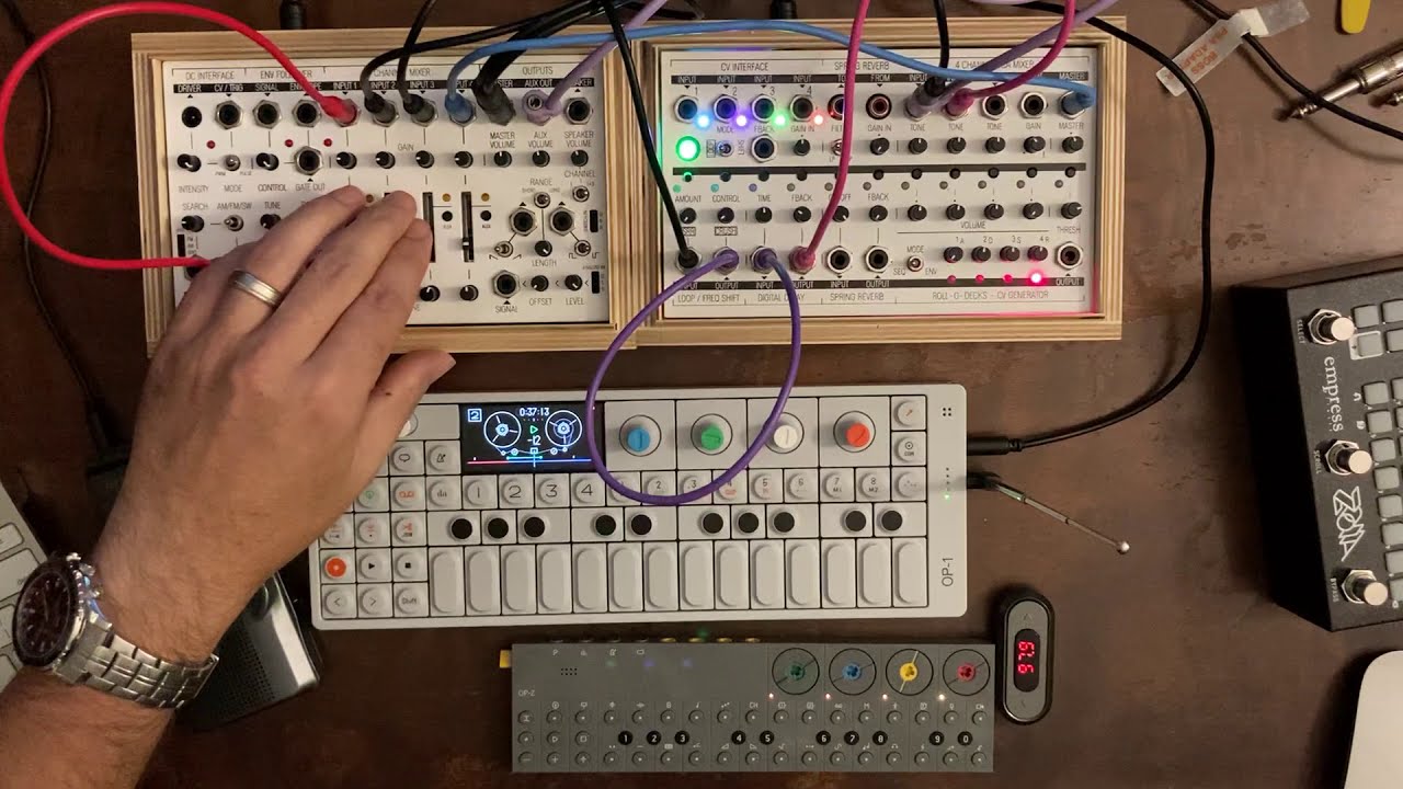 Here’s one I just did but I forgot to hook up the reverb tank. Dictaphone is playing a recording I made from the 4th of July. Radio station is coming from the Koma Field Kit. OP-Z audio is being transmitted over FM to the OP-1 which is looping a backwards recording of my ukulele pitched way down. Everything is being sent through the Field Kit FX and back into the Field Kit. Somehow, I need to let the Zoia join the party soon.