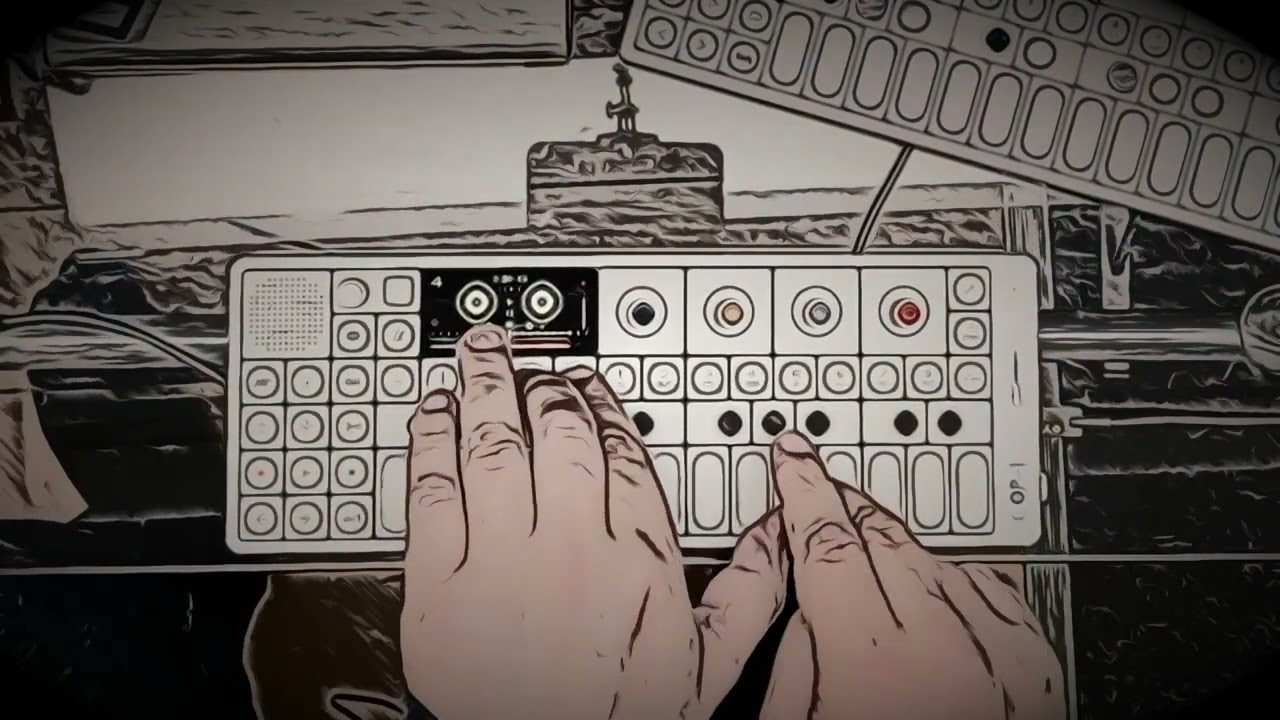 Drums are provided by PlayBeat3 with OP-1f accompanying percussion and grit elements. All other sounds are OP-1f synths captured in FlexiSampler in Drambo.