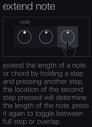 If you have a chord on step 1 and a chord on step 5, you can make the chords slightly overlap by setting step 1’s duration to 5 steps, pressing the 5th step again for the dim LED.